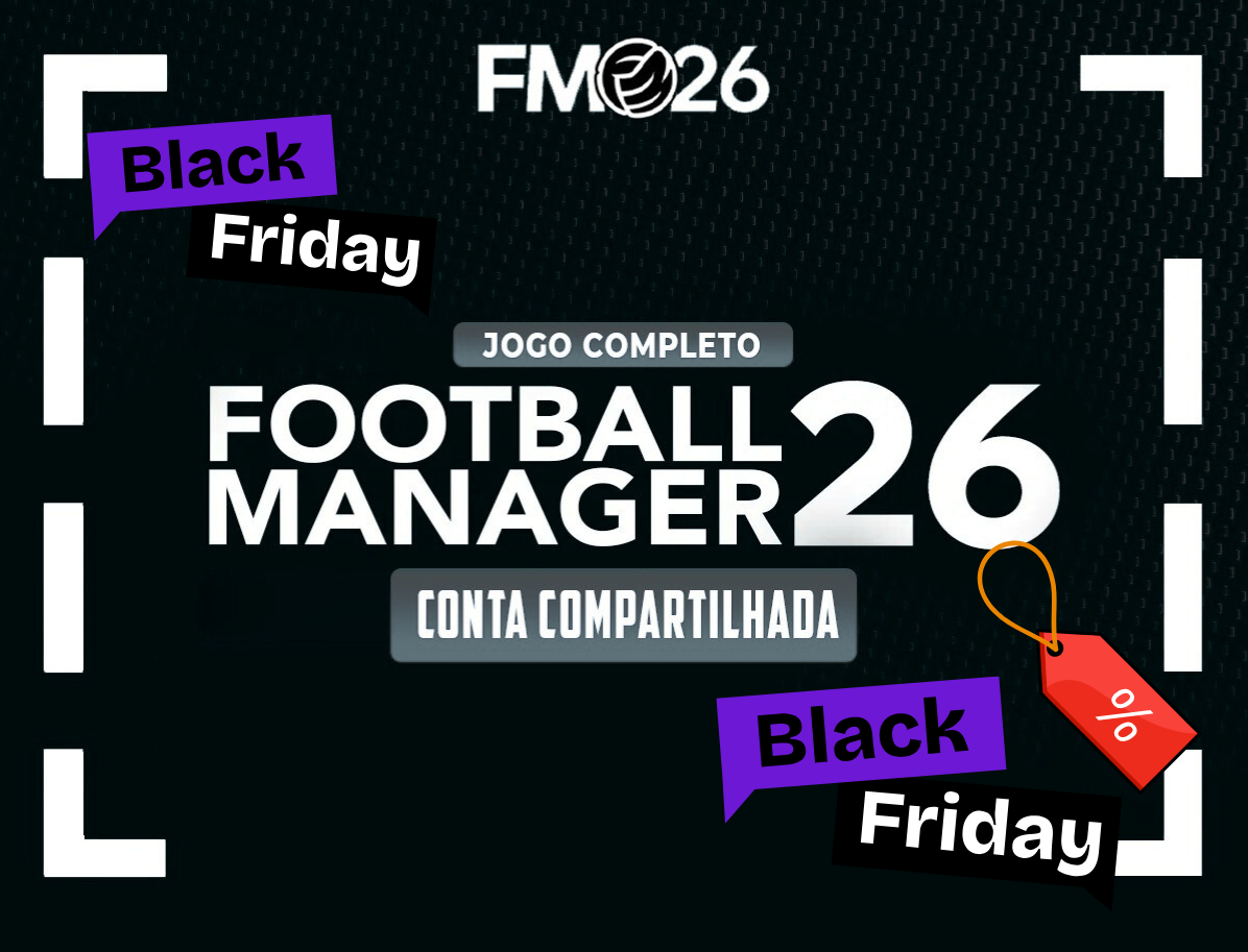 Garanta sua conta compartilhada e jogue o Football Manager 2026 com visual completo — e com Editor In-Game se disponível na conta.